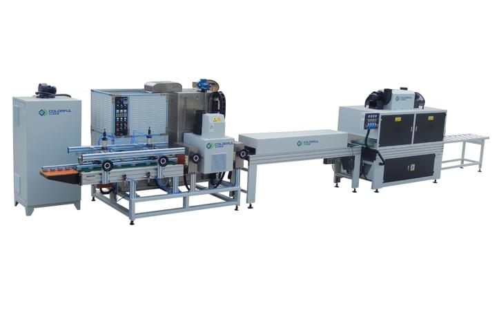 ■真空噴涂生產線是一套專為家具線條設計的噴涂設備。主要用于門套線、門框、地腳線、畫框、窗簾架、舌槽企口板、地板、壁板以及各種重型材料表面做水性底漆和UV光固化工藝。